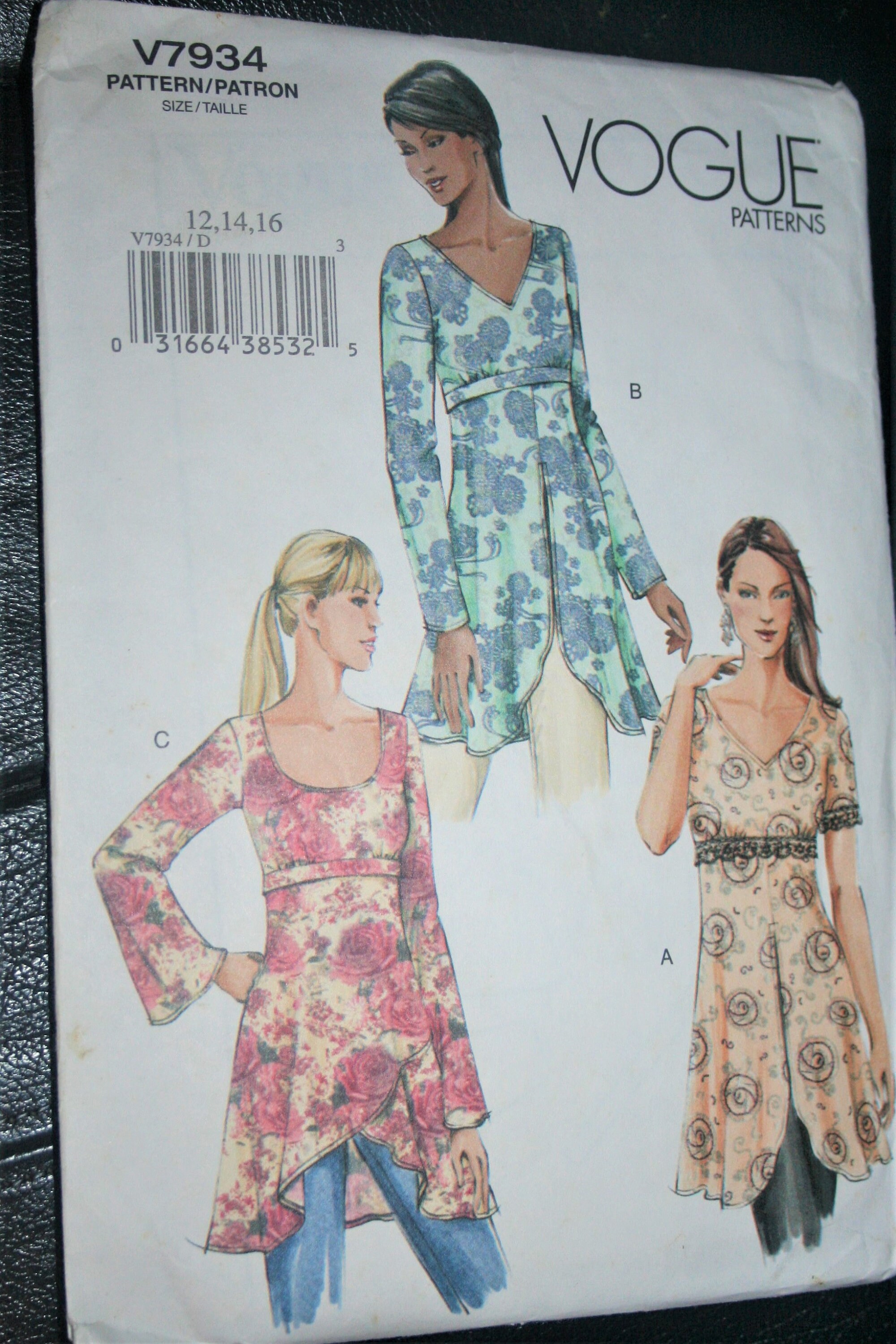 Vogue Top Pattern 7934 Sewing Pattern Sz 12 16 A Line Etsy
